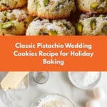 Keywords: pistachio cookies, wedding cookies, nut cookies, almond extract cookies, powdered sugar cookies, holiday dessert, soft cookies