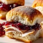 Keywords: turkey sliders, cranberry sauce sliders, holiday appetizers, savory sandwiches, baked sliders, Hawaiian rolls, easy party food