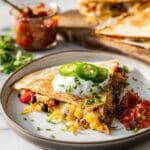 For a fun twist, cut the quesadillas into small squares for party bites or layer them between plates to keep warm until ready to serve. Add colorful bowls of dips and toppings on the side to make a customizable, festive spread.