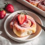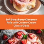 Keywords: Strawberry cinnamon rolls, strawberry pastry, cream cheese glaze, homemade cinnamon rolls, breakfast rolls, soft rolls, sweet rolls, fruit-filled rolls