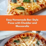 Experience the authentic taste of South Shore Bar Pizza with this homemade recipe featuring a crisp crust, flavorful sauce, and a blend of sharp cheddar, fresh mozzarella, and Parmesan cheeses.