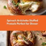These Spinach Artichoke Stuffed Pretzels are soft, cheesy, and packed with flavorful spinach and marinated artichokes, perfect for a savory snack or appetizer.