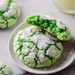 These Soft and Chewy St Patrick’s Day Cookies feature a vibrant green color from gel food coloring and a sweet powdered sugar crinkle finish, delivering a tender bakery-style texture that’s perfect for holiday parties.