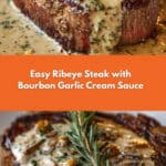 Keywords: ribeye steak recipe, bourbon cream sauce, garlic cream sauce, stovetop steak, easy steak dinner
