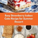 Keywords: Strawberry Icebox Cake, no bake cake, whipped cream dessert, summer dessert, easy icebox cake, graham cracker cake