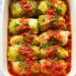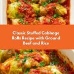 These Stuffed Cabbage Rolls are a comforting and hearty dish featuring tender cabbage leaves wrapped around a savory mixture of ground beef, rice, and aromatic seasonings, baked in a rich tomato sauce.