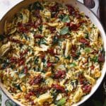 A vibrant and flavorful one-pan meal featuring tender orzo pasta tossed with sun-dried tomatoes, artichoke hearts, fresh spinach, garlic, capers, and a splash of lemon juice. Ready in just 30 minutes, this dish makes a perfect quick and healthy dinner option bursting with Mediterranean-inspired flavors.