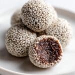 Arrange these balls on a rustic wooden platter layered with banana leaves or parchment paper and sprinkle with extra toasted sesame seeds for a stunning display that invites everyone to indulge.