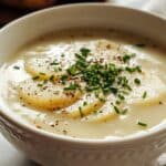 This creamy potato leek soup combines tender leeks and russet potatoes in a savory broth, finished with heavy cream for a warm, comforting bowl perfect for any day.