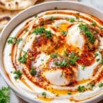 Turkish Eggs is a creamy and flavorful breakfast dish featuring tangy Greek yogurt topped with perfectly poached eggs and a spicy chili butter, served with warm naan or toasted bread.