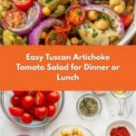 A fresh and vibrant Tuscan Artichoke Tomato Salad bursting with cherry tomatoes, marinated artichoke hearts, chickpeas, and fresh herbs, all tossed in a zesty vinaigrette. Perfect as a light lunch or a flavorful side dish, this no-cook salad comes together quickly and delivers a delightful Mediterranean flair.