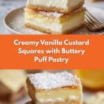 Keywords: vanilla custard cream squares, puff pastry dessert, creamy custard dessert, whipped cream pastry, easy custard squares