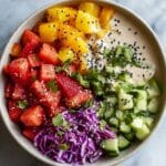 💡 Pro Tip: Arrange veggies by color to maximize that rainbow effect that makes this bowl so irresistible.