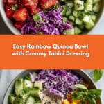 Keywords: rainbow bowl, tahini dressing, quinoa salad, healthy bowl recipe, vegetarian bowl